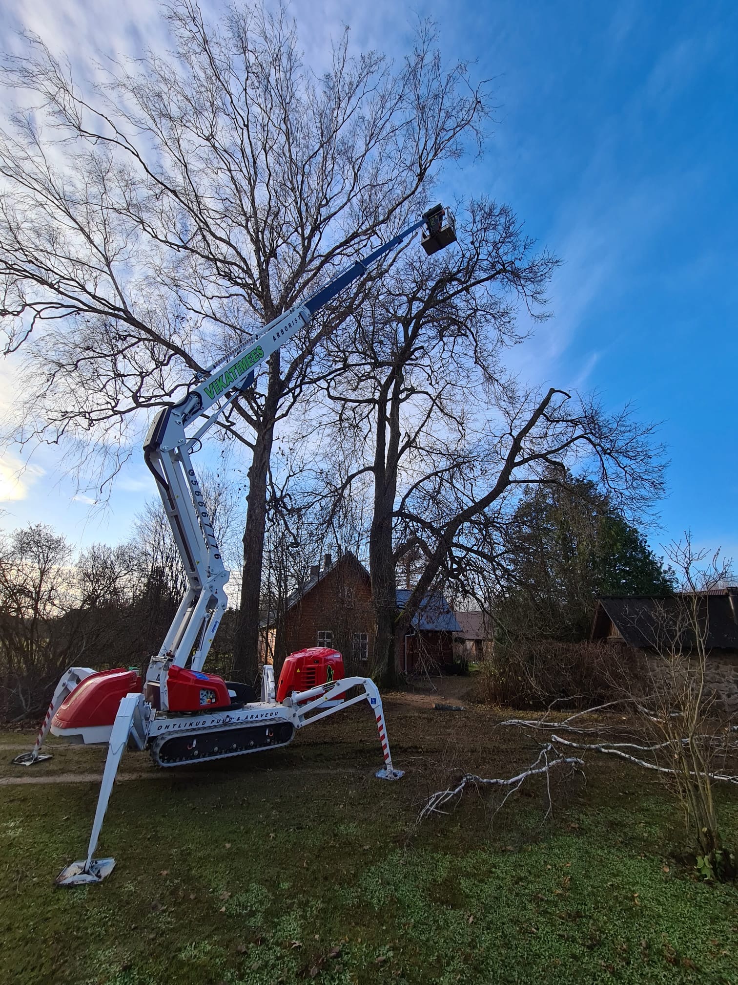 Vikatimehe roomikutega tõstuki puhul tasub tähele panna, et sellel on valged, mitte mustad roomikud. Seda seetõttu, et roomikud ei määriks klientide kauneid kivisillutisega parklaid.